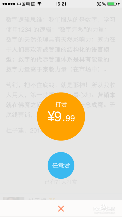 6、如果选择默认金额,直接进行支付。如果选择任意赏,输入金额后点击“确认支付”即可完成支付。