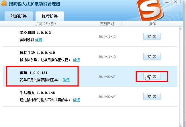3、这时在弹出来的新界面中,选择“截屏”点击安装,就能够正常使用