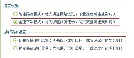 5、因为更新的QQ音乐会默认的设置的是自动限速模式。这样网速不是很好的童鞋的电脑听音乐当然就非常的卡咯。 我们把他设置成全速下载模式。这样就不会卡了。