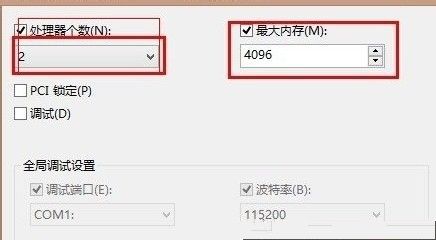 2. 之后我们再切换到“高级选项”卡下,然后根据自己CPU核心数量与真实内容容量上做正确的配置,由于小编是双核的CPU,4G的内存,这个以自己电脑的情况而定,如下图: