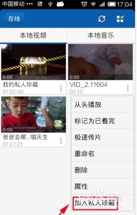 5、再次返回到本地视频,这个时候你就会发现,你的视频下面多了一排“我的私人珍藏”字样,到此就算完成设置了。