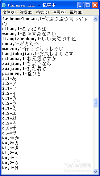 然后把4所显示的内容复制粘贴到[Phrases.ini]所显示的最后一行,然后关闭保存即可。(PS:如果看懂是怎么编辑短语的可以自己试着往里面添加短语)