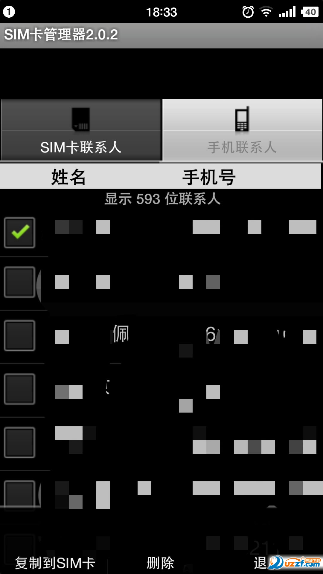 进入“sim卡管理器”,软件会读取手机里的联系人列表,分两类显示,左边是sim卡联系人,右边是手机联系人。