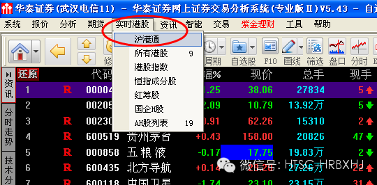 第三步,选择“实时港股”---->“沪港通”,调出沪港通页面