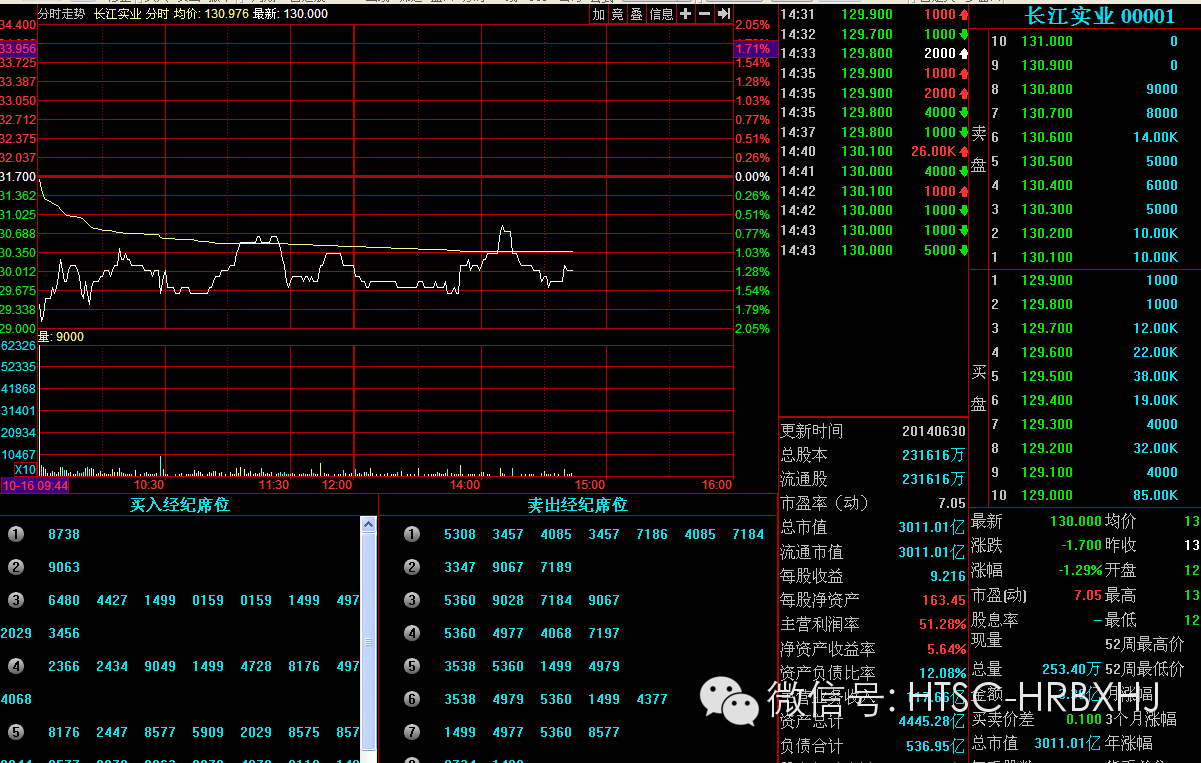 第四步,选择某一只代码可以看10档行情