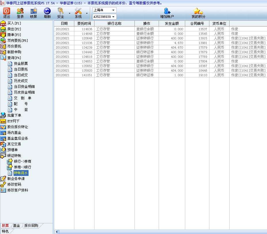 华泰证券代码【10430000】 建行为:【035】 华泰证券郑州农业路营业部代码:1360