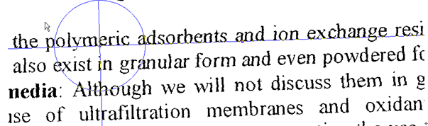 左击“中心点”,拖至基准线的始端(可以选择两个相同字母或汉字,也可选择图形或表格的边框为基准线),本实例以e的底部为第一基准点。