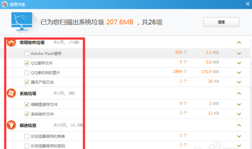 6、扫描完成后,我们可以设置一下被清理的项。