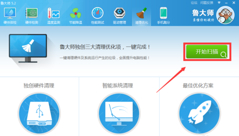 2、打开了清理优化功能,现在,我们可以进行垃圾的扫描了,点击“开始扫描”按钮,开始扫描吧。
