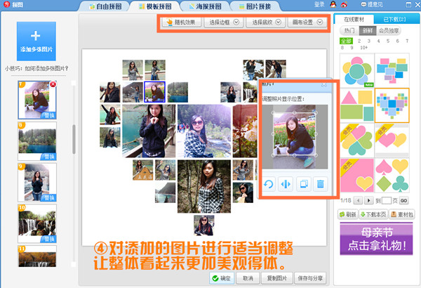补充说明:如果添加的图片较多且质量较大,美图秀秀可能会发生卡顿现象,稍等一下变可恢复。
