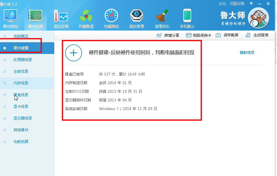 电脑寿命测试包含了电脑主要部件的制造日期和使用时间