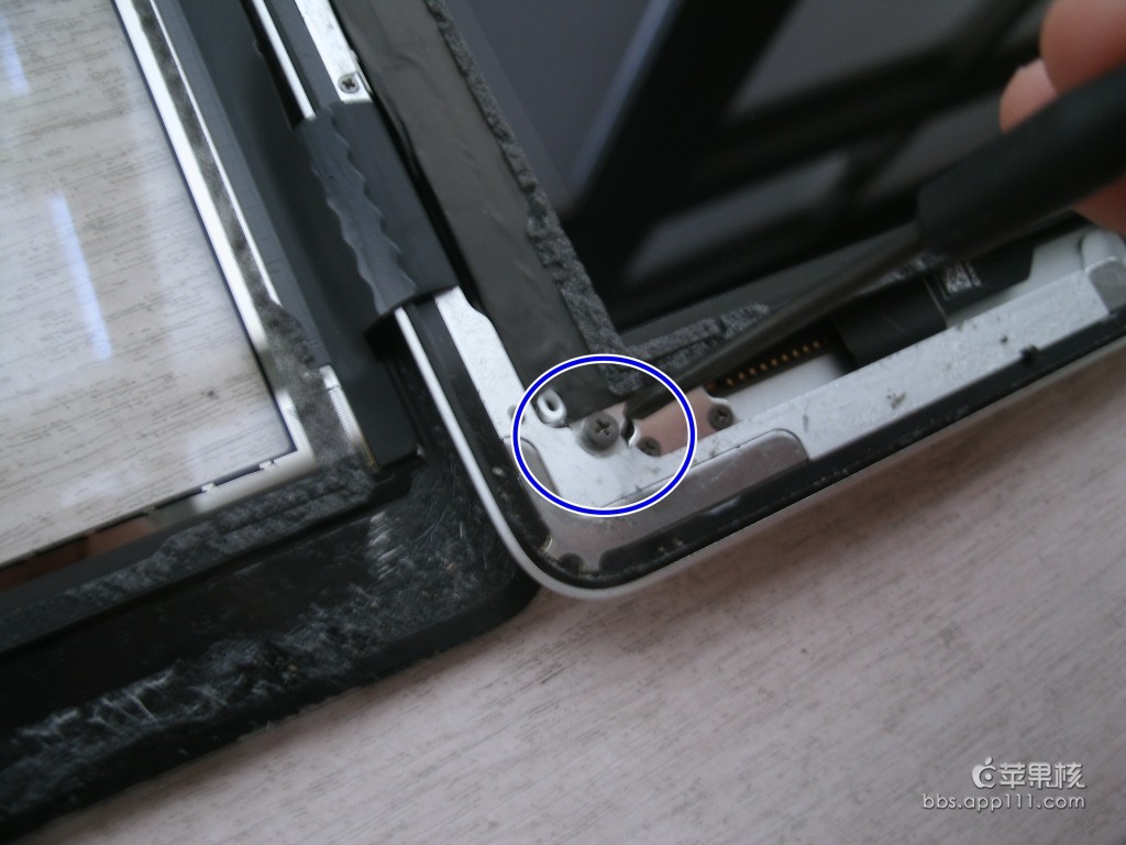 第二步:用2號工具將圖上藍圈四個角的螺絲打開