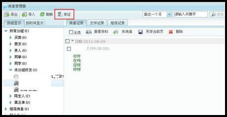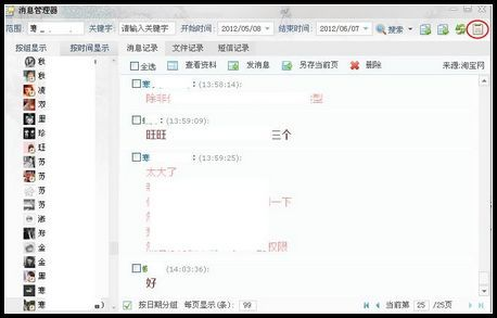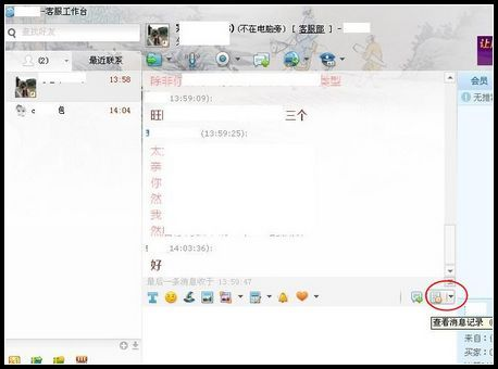 步骤一、进入消息管理器:打开您与对方的对话框——然后点击“查看消息记录”,再点击右下角的“消息记录”按钮或按F8。