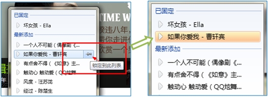 一. 点击鼠标右键:“最新添加“显示您最新添加的歌曲list,点击歌曲名直达单曲详细页,将您喜欢的歌曲固定到”已固定“;点击”任务“栏tab直达”首页“、”乐库“、”MV“、”我的音乐“、”软件“专区;