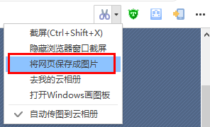 第二步,点击截图右边的倒三角图标,选择将网页保存成图片
