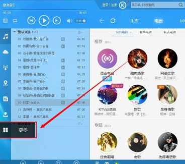 1、打开酷狗音乐盒,可以在左侧看到Win8的标记(更多工具)。