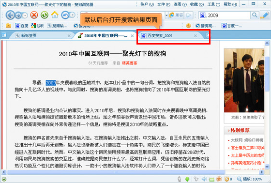 您可以在页面中选中您希望搜索的文字,用鼠标一拖拽,即可在新标签页中打开搜索结果,如下图所示。