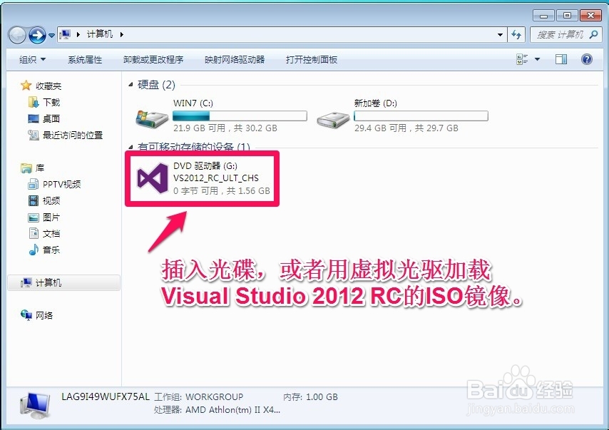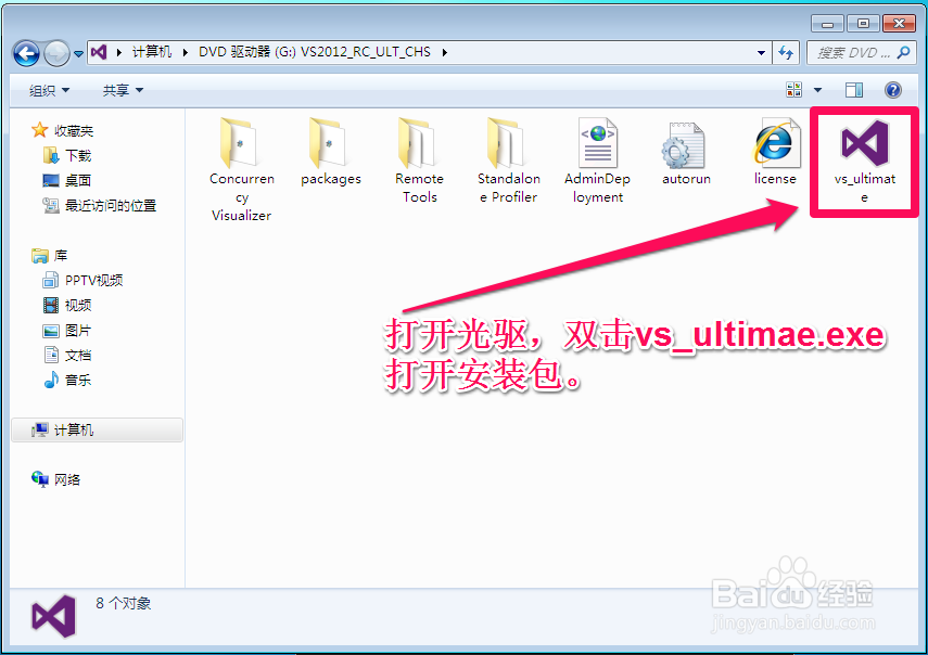 插入Visual Studio 2012 光碟,或者用虚拟光驱加载 Visual Studio 2012 镜像!