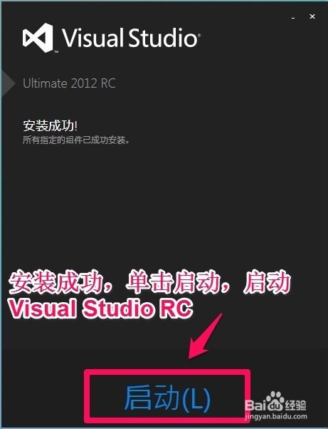 安装结束后,显示【安装成功】界面,点击【启动】按钮,可启动Visual Studio 2012