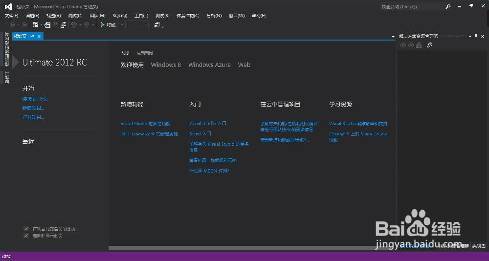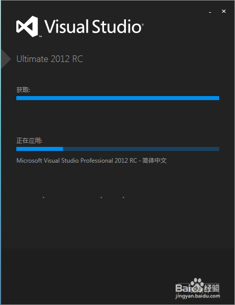 启动 Visual Studio 2012 RC,进入启动界面,稍等片刻......第一次运行 Visual Studio 程序会自动配置运行环境,稍等.....