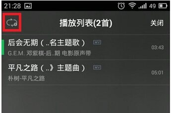 4、在左上角就可以看到播放模式设置了,默认是“列表循环”模式。