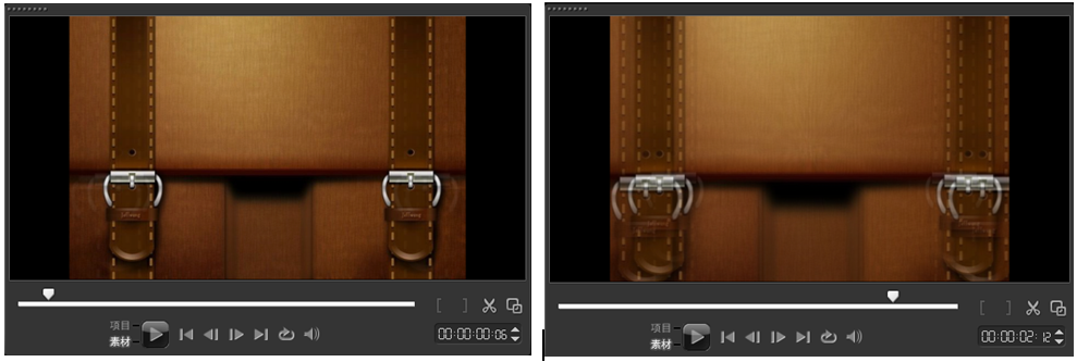 五、单击鼠标左键,将其拖拽至故事板中的素材图像上,即可添加视频滤镜。单击导览面板中的“播放”按钮即可预览添加的视频滤镜效果。