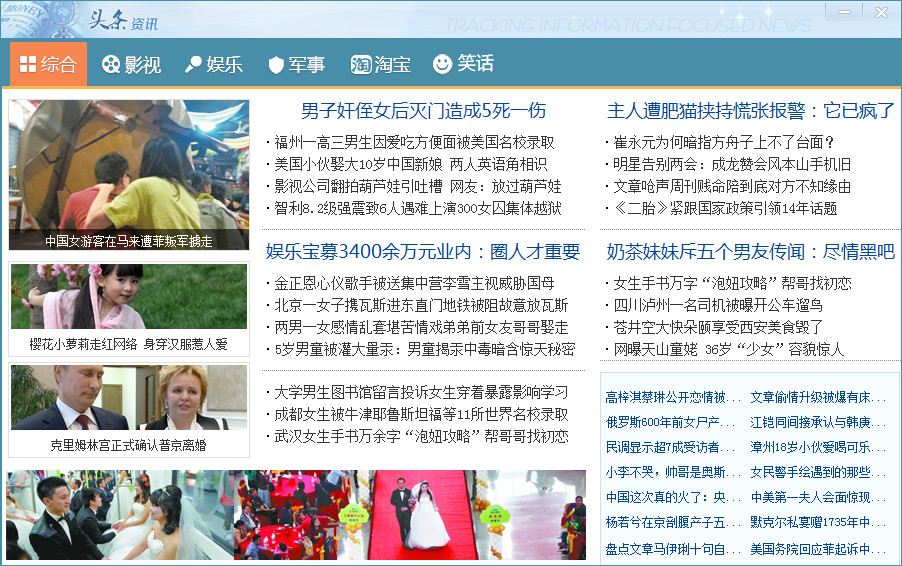 头条新闻是一款基于windows桌面方便易用的新闻浏览软件,收集发布了国内外头条新闻资讯,让用户实时了解新闻动态。
