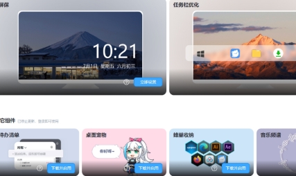 3.upupoo动态壁纸还配备了强大的多功能组件库,囊括了6大类桌面工具,涵盖桌面美化、效率提升和趣味娱乐三大领域。具体包括桌面屏保、任务栏优化、待办事项管理、桌面宠物组件、分屏工具以及音乐可视化频谱组件,满足用户多元化需求。