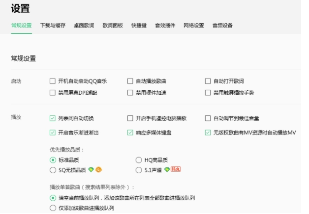 五、关于QQ音乐的K歌功能怎么使用?答:进入QQ音乐播放界面后,点击右上角的设置图标展开菜单,选择"设置"选项进入功能设置区。在左侧导航栏中选择"歌词设置",于"桌面歌词"板块内勾选"卡拉OK模式"启用该功能。完成设置后,依次点击界面右下角的"应用"和"确定"按钮保存配置。