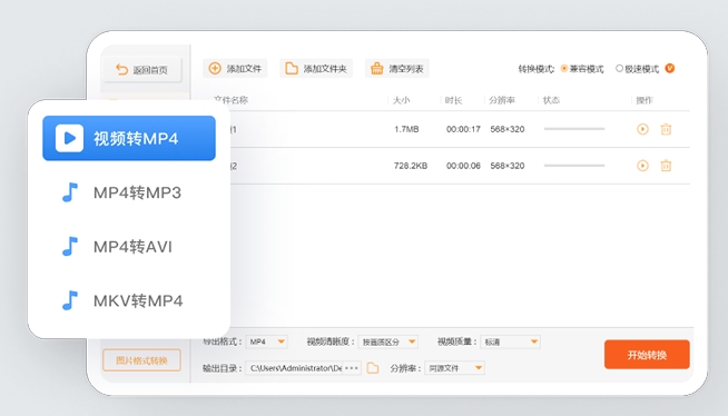 支持将F4V、OGV、3GP、AVI等37种常见视频格式转换为MP4格式。