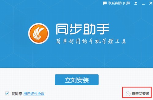 2. 能够点一下【自定安裝】,在开启的挑选安裝部位页面中,您能够点一下【访问】在开启的对话框中,您能够自主挑选同步助手安裝部位,挑选进行后点一下【立即安装】。