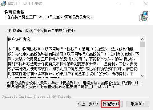 2. 对许可证书协议书选择我接纳。