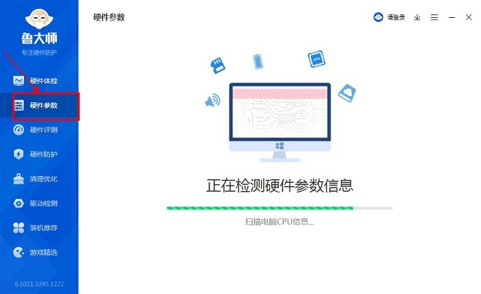 1、下载鲁大师离线版到电脑中,打开软件后点击【硬件参数】,等待一会