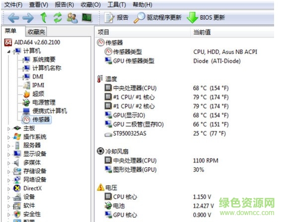 同样是在“计算机”目录下载,找到“传感器”选项,打开传感器就能看到本机CPU,硬盘,南桥的温度数据。如果cpu温度过高又降不下来,你就要看看是不是散热出了问题,或者要考虑去维修店看看了。