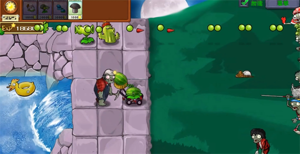 3、该闯关战斗的模式下将会看到植物允许放置的地方越来越小,所以策略上需要及时的改变;