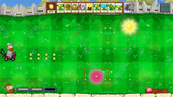 3、选择好植物后通过在屏幕处不断的点击或者按着不放进行攻击,轻松击败所有敌人;