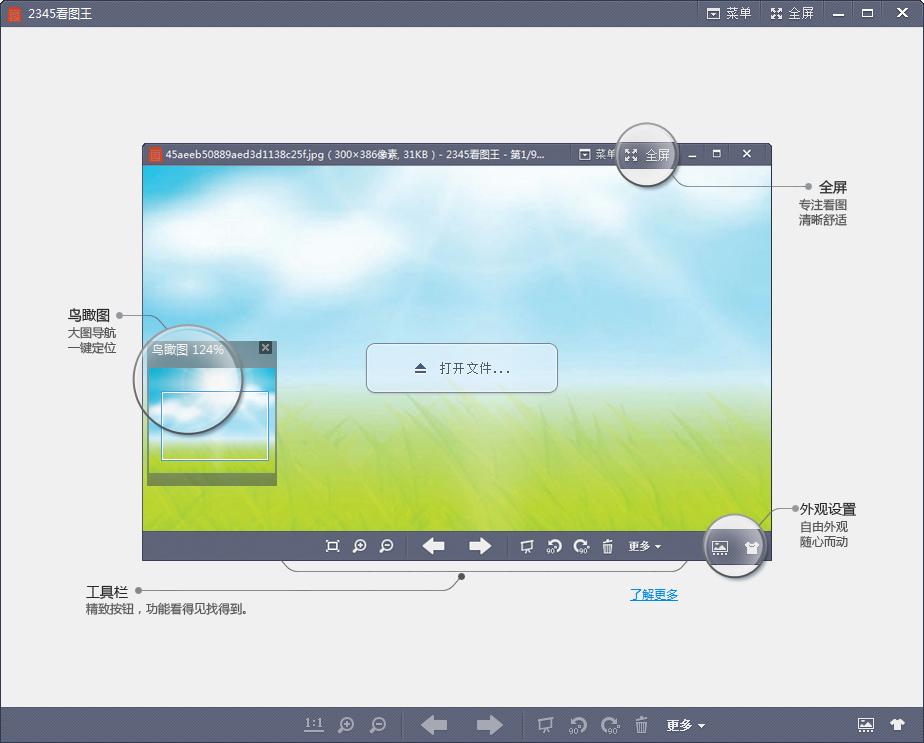 2345看图王,又叫好压看图王,由2345网站打造的一款免费看图软件,拥有强力图像引擎,能够支持67种图片格式,并支持鼠标翻页看图,还能直接用鼠标在鸟瞰图上进行快速缩放哦。是目前网络上最快的看图软件之一。