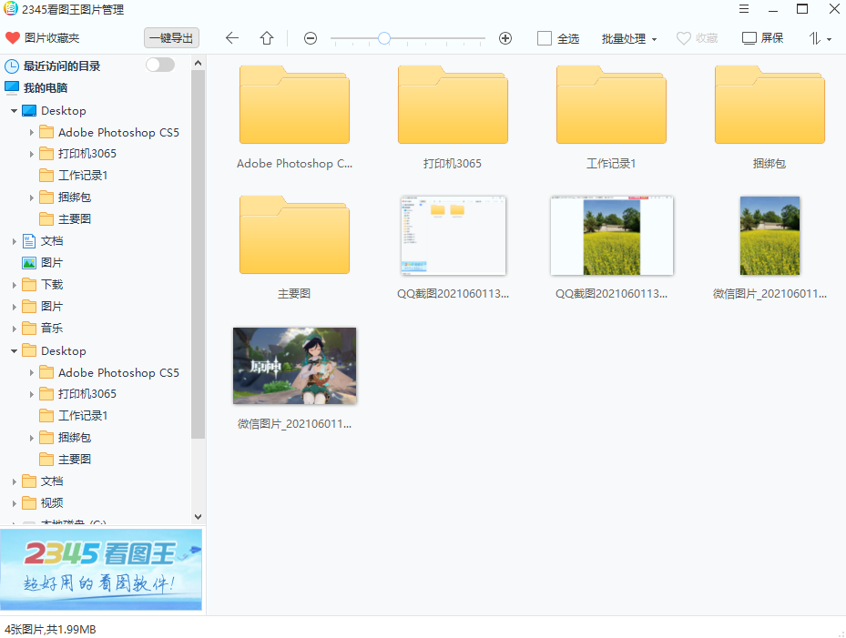 2、2345看图王新增平级文件夹穿透功能,看漫画再也不用逐个打开文件夹;