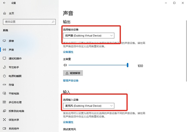3、选择“录制”,选择"Dubbing Virtual Device(大饼AI变声器内置虚拟声卡)”,将其设为默认值;