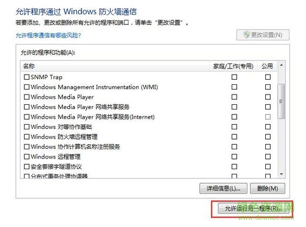 4、此时如果无法连接,请到【控制面板】---【所有控制面板项】---【Windows 防火墙】---【允许程序或功能通过windows防火墙】中找到【爱思助手AirPlayer投屏工具】和【Bonjour】并打勾;