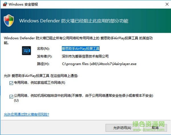 首次双击打开【手机投屏直播】,会弹出安全警报,我们点击允许访问;