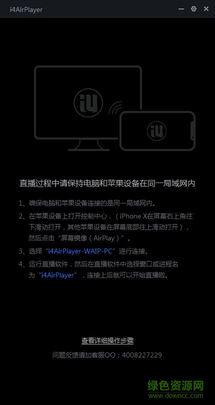 1、通过【手机投屏直播】工具连接设备,过程中请保持电脑与苹果设备在同一个局域网内;