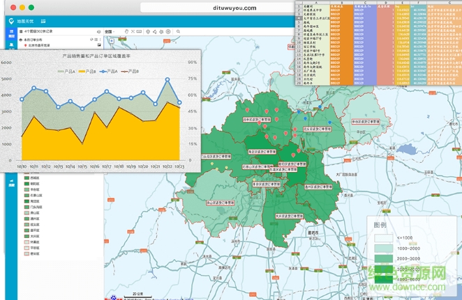 2.位置智能:将地理数据、GIS模型与企业数据相结合,从地理位置角度洞察与分析企业业务; 为你打造精准科学的企业作战地图、选址分析、营销地图、客户分布图、热力图。