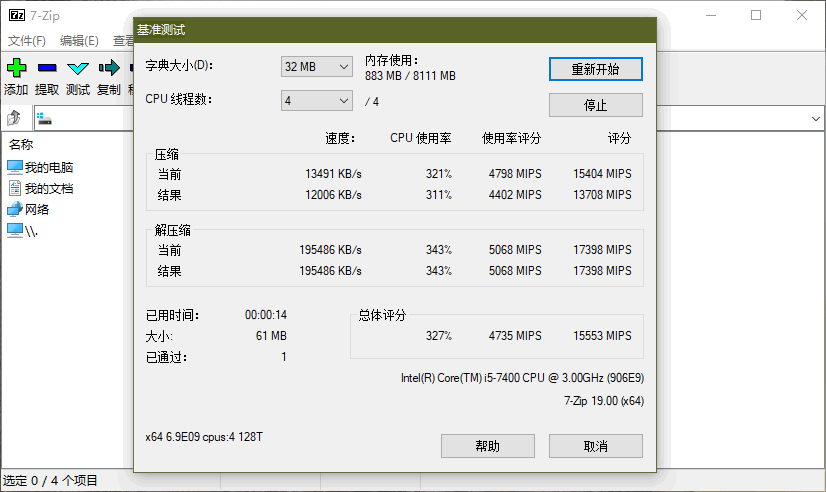 固实块越大,大型7z压缩文件的压缩速度CPU线程就越高。