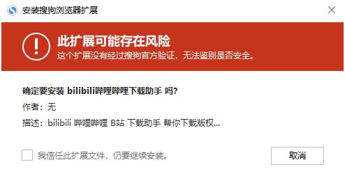 2、点击之后就会弹出来一个弹窗,可以看到该软件是一个浏览器扩展插件,我们只要点击【信任-验证并安装】就可以安装此扩展;