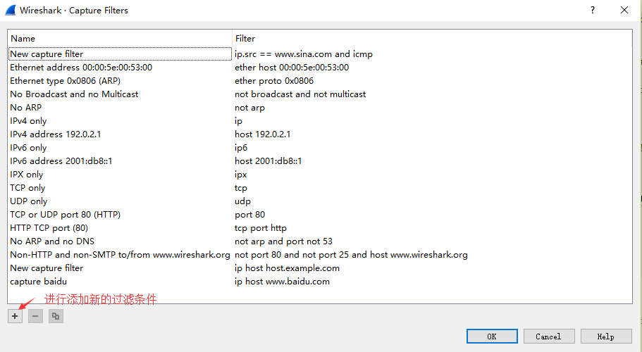 捕获过滤器的菜单栏路径为Capture --> Capture Filters。用于在抓取数据包前设置。
