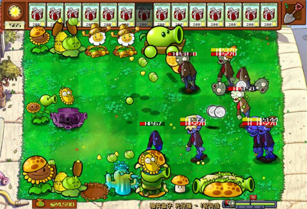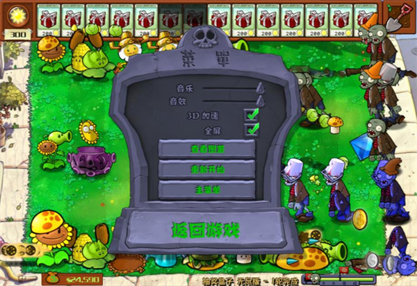 3、让你和僵尸之间去进行对决,随机的植物不靠谱的出现,你需要及时的应对局面的危机。