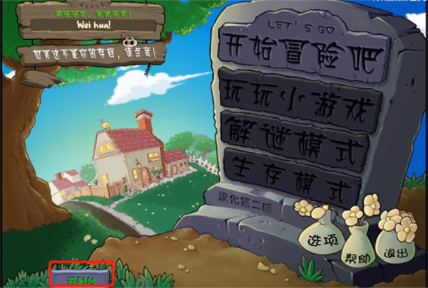 4、重新回到游戏的主界面之后,玩家只需要点击【开始冒险吧】按钮即可开始自己的植物大战僵尸之旅。