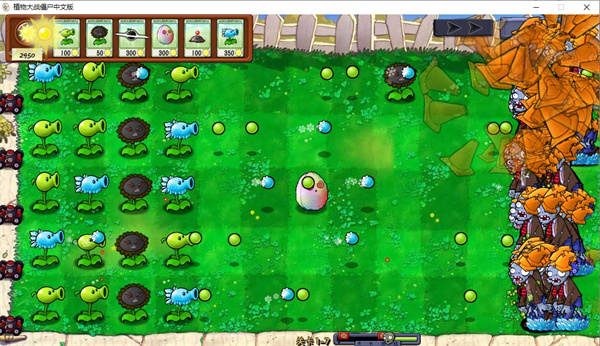 3、可以根据自己的想法去进行放置植物,这样就可以面对庞大的僵尸群体,消灭所有的人;