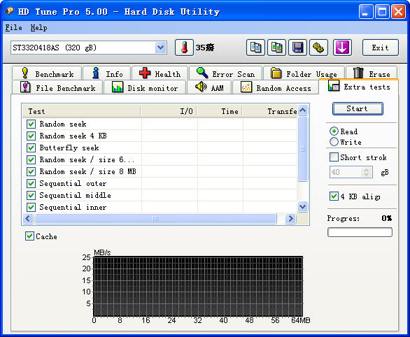 HD Tune是一款小巧易用的硬盘工具软件,其主要功能有硬盘传输速率检测,健康状态检测,温度检测及磁盘表面扫描等。另外,还能检测出硬盘的固件版本、序列号、容量、缓存大小以及当前的Ultra DMA模式等。虽然这些功能其它软件也有,但难能可贵的是此软件把所有这些功能积于一身,而且非常小巧,速度又快,更重要的是它是免费软件,可自由使用。